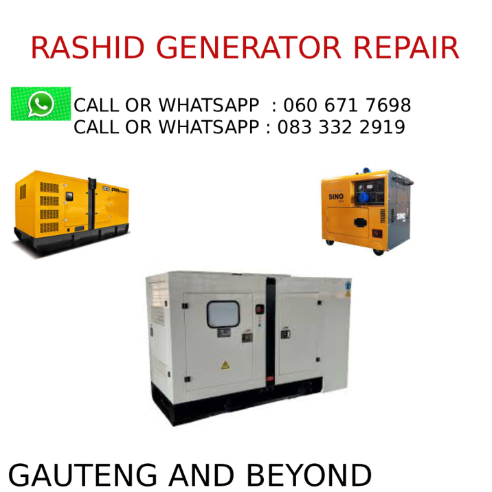 At Rashid team we have technicians who are are well trained in the Generator Repair field with 10 years’ experience, especially with the latest technology that works with PC boards, sensors, etc. We work on all the major brands, Kippor Penta Volvo Ryobi Jonh Deere and many more brands Diesel and Petrol....Our high level expertise and experience enable efficient and precise repairs of Diesel and Petrol Generators. We work on all Generators brands and models. We specialize in commercial, residential, and industrial Generators repairs and servicing. Repairs can be done onsite thereby saving both time and money for the convenience of our clients. We pride ourselves on reliability and impeccable quality of work. For the purposes of honesty and transparency, we always advise our clients on the cost of material beforehand.